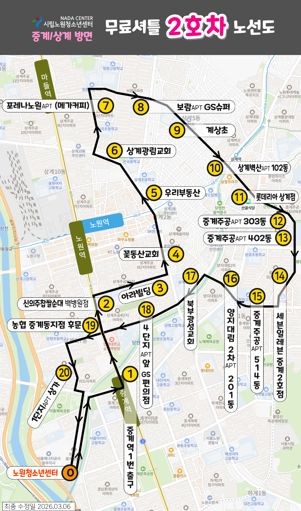 | 19 | 44분 | 농협 중계동 지점 후문 |